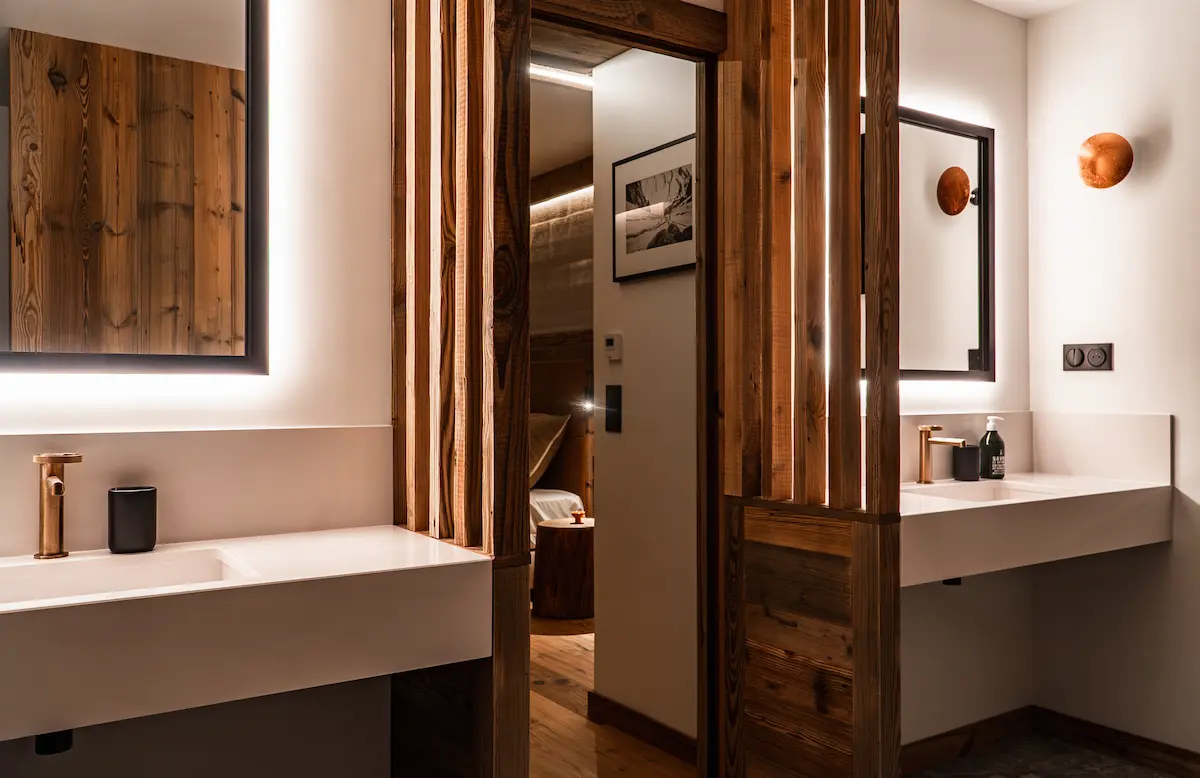 Avec 210 m2 de beaux volumes, le chalet Albert peut accueillir jusqu’à 10 ou 11 personnes avec 4 chambres en suite, dont 3 chambres doubles et un dortoir.
